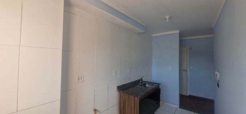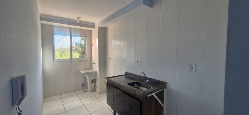 2 dormitórios, banheiro social, living para 2 ambientes com sacada, cozinha com gabinete e área de serviço. 1 vaga de garagem coberta.