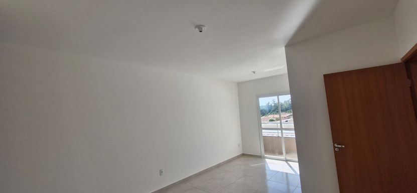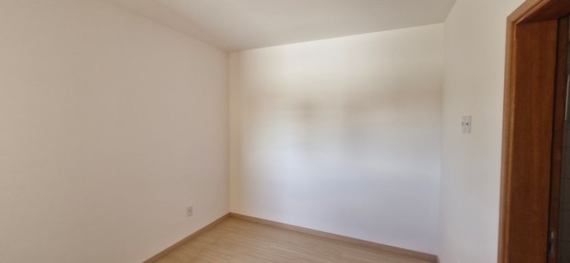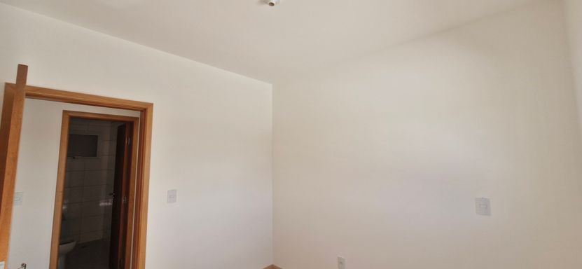 Apto com piso porcelanato nas áreas comuns e laminado nos quartos.