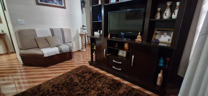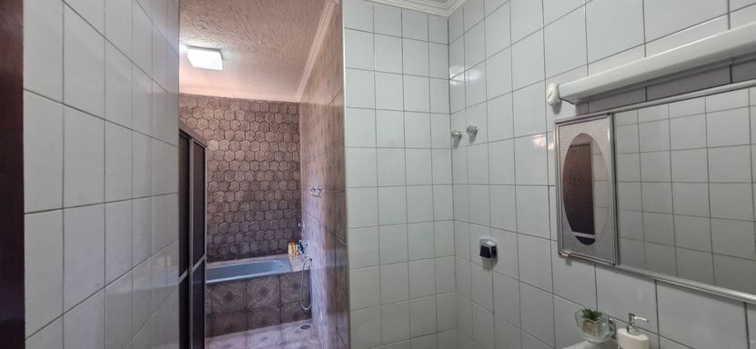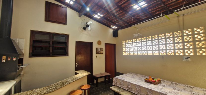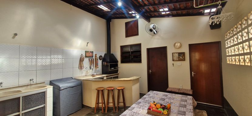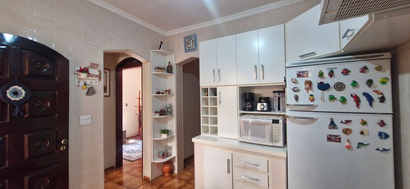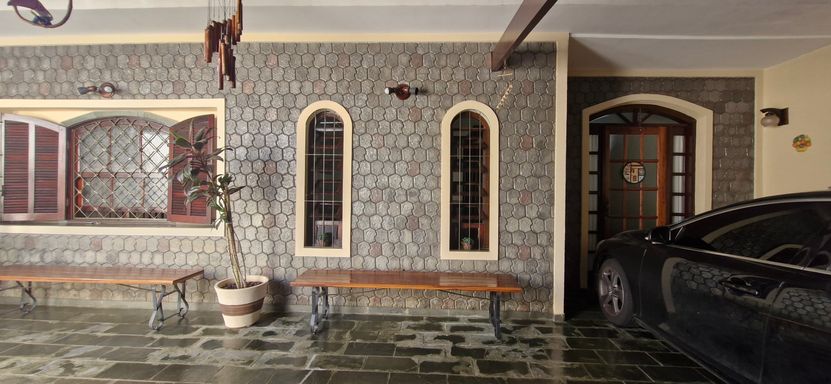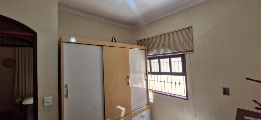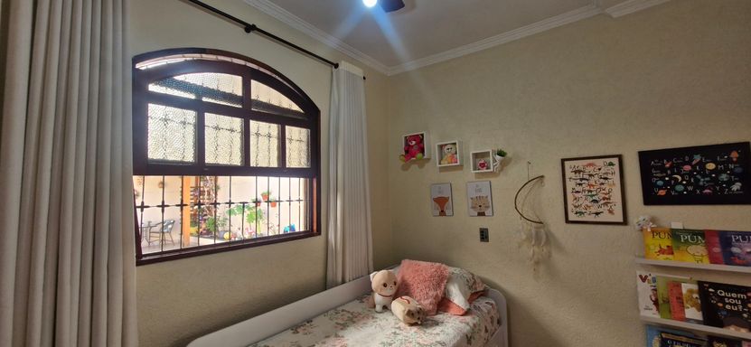 São 257m² de terreno. Conta com 3 dormitórios, banheiro social com banheira, sala de estar, sala de jantar, cozinha com armários planejados, área de serviço, quintal com churrasqueira e quarto externo e banheiro.