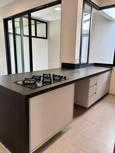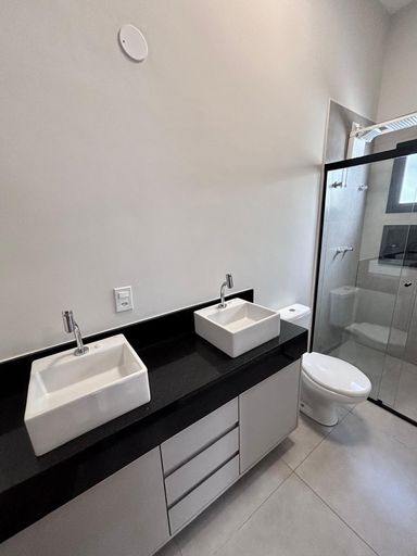 A casa conta com 3 quartos, sendo 1 suíte, área de luz, living para 2 ambientes, cozinha americana com churrasqueira, varanda integrada a cozinha e quintal gramado.