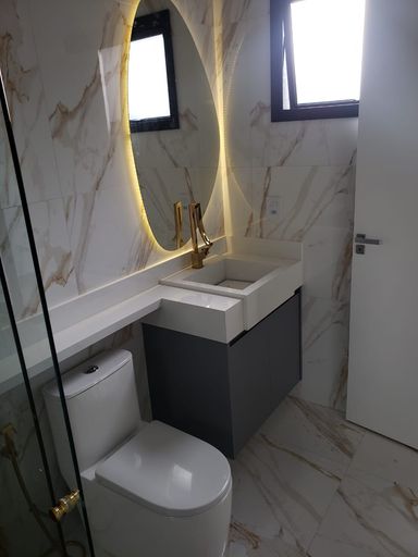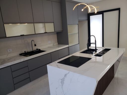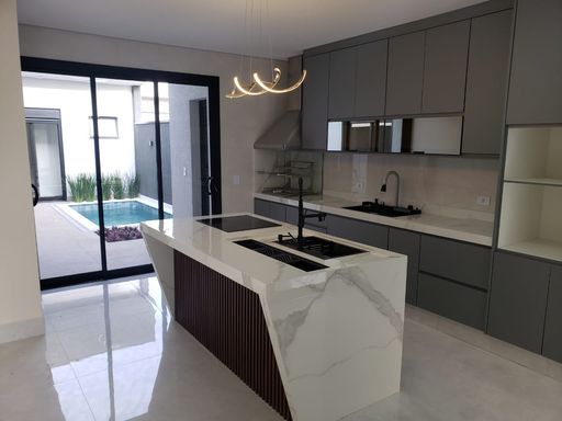 Fino acabamento, cooktop na cozinha, casa rica em armários planejados e box blindex nos banheiros.