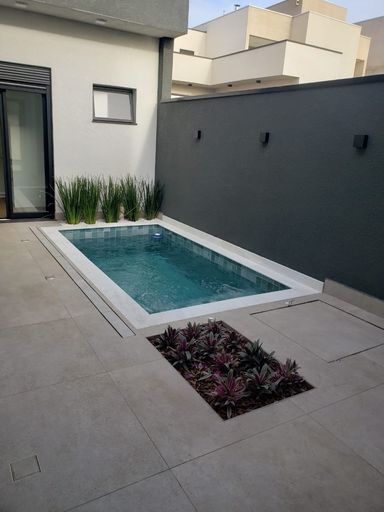 Área íntima com 3 suítes, sendo 1 master com closet, living para 2 ambientes com pé direito duplo, cozinha gourmet com ilha. Quintal com piscina e jardim.