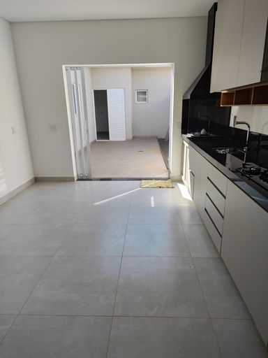 Casa nova, nunca habitada. Conta com 3 dormitórios, sendo 1 suíte, living para 2 ambientes com pé direito duplo, lavabo, cozinha estilo americana com armários planejados, área de serviço e quintal.