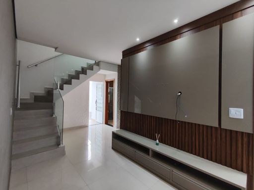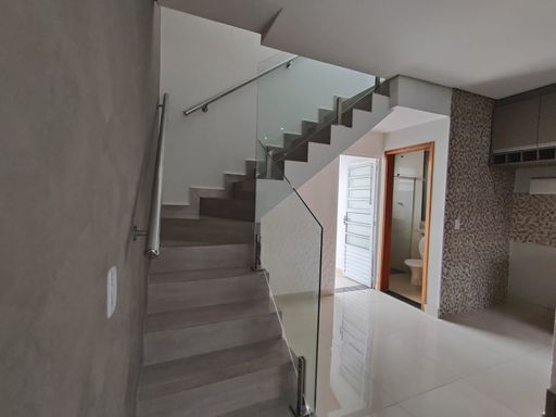 Casa sobrado 2 dormitórios, sacada, são 2 banheiros, sala com painel, cozinha planejada, banheiro parte de baixo, área de serviço coberta, quintal, área gourmet.