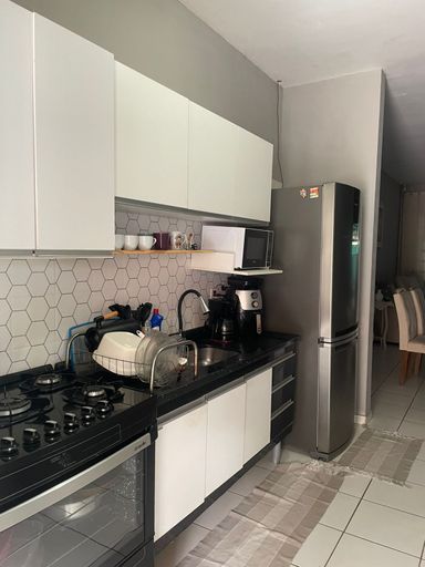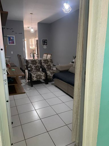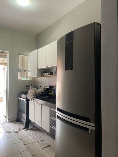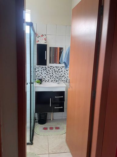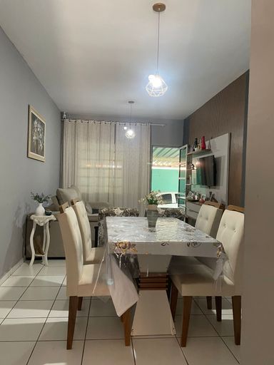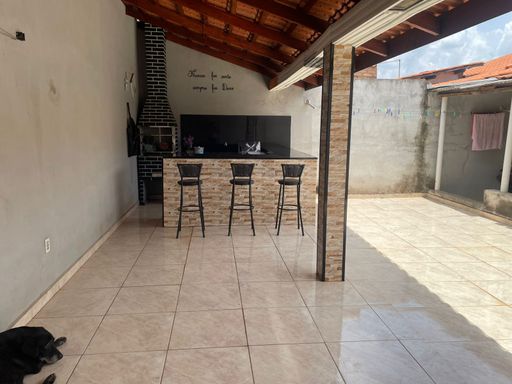 Casa térrea com 3 dormitórios, banheiro social com box blindex, sala par 2 ambientes, cozinha com armários planejados, área de serviço coberta. Quintal com área de churrasqueira.