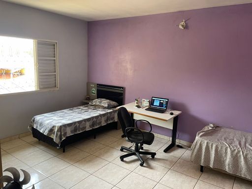 4 quartos, sendo 1 suíte, banheiro social, sala ampla, copa, cozinha ampla com armários, quartos com armários e varanda. Área de serviço coberta e quintal amplo.